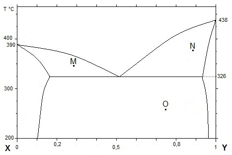 composition du liquide (point C) 68 % de Y et du solide (point D) 96 % de Y.